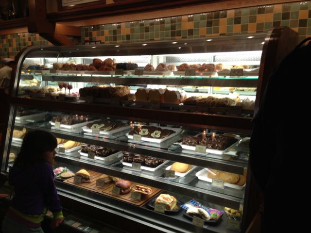 Barbie and I split the delicious Salami Royale Sandwich, layers of Salami, Fennel Salami, Sopressata, Provolone & Asiago Cheeses, Pepperoncini, Red Onions and Olive Tapenade on Ciabatta Bread, for $8.99, and an Mocha Latte.